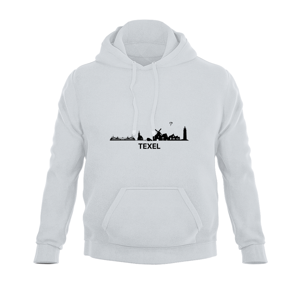 Bestel een hoodie met de skyline van Texel het grootste Waddeneiland van Nederland. Texel staat bekend om zijn fantastische stranden, prachtige natuurgebieden en bijzondere bezienswaardigheden als Ecomare en de rode vuurtoren. De markante plaatsen en typische Texelse gebouwen en andere hoogtepunten zijn opgenomen in de skyline van Texel.